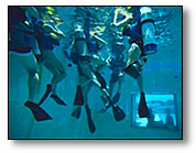 Dolphin Diving Probably the most extraordinary aspect of UNEXSO's 13 dolphins is that they are free to come and go. They live in pens at the UNEXSO facility, but are released into the open sea several times a week to rendevous with divers at a nearby reef for the "Dolphin Dive" experience. If they wanted, the dolphins could simply swim off and never return. This has never happened. Dolphin Diving UNEXSO also offers Dolphin Diving, a unique scuba enocunter. Every
